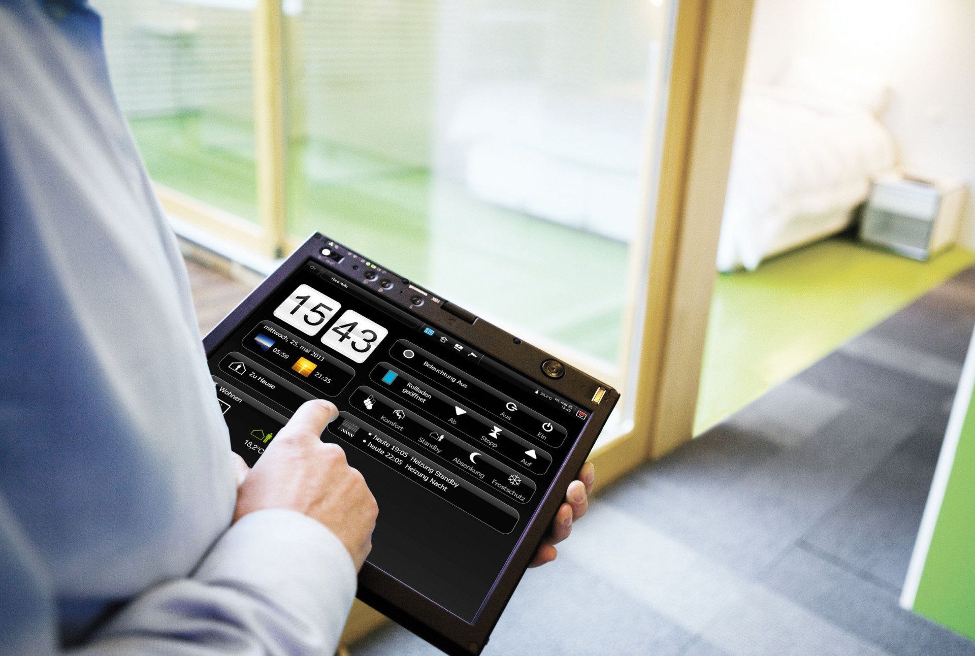 Unsere intelligenten Lösungen umfassen unter anderem die Steuerung von Licht, Heizung, Klimaanlage, Jalousien und Sicherheitssystemen. Sie können diese bequem von einem Bedienpanel aus steuern oder über Ihr Smartphone oder Tablet von unterwegs aus. Die Automatisierung kann auch durch Bewegungsmelder gesteuert werden.